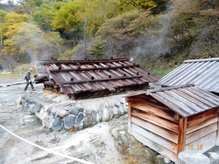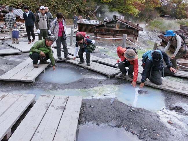 湯滝上から湯ノ湖湖畔を半周して湯元温泉まで。宿に入る前に「温泉寺」「湯本・源泉」を見学して今日の宿「湯守釜屋」へ。