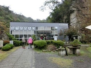 史料館周辺には、大谷景観公園・岩壁に彫られた高さ27mの平和観音・日本最古の磨崖仏・洞窟の中に包まれた大谷寺などあります。資料館には採掘の歴史と道具類や機械等の展示品が並べられ、また地下約30mの採掘場跡に入ると、切り出しの跡が幻想的空間を作り、地下神殿のようです。
