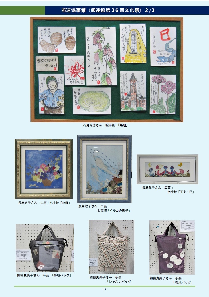 「熊連協文化祭」の出展作品の拡大画像は「熊連協文化祭 37期報告」HPをご覧ください。