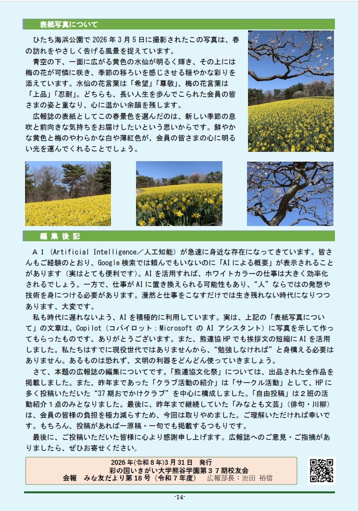 37期校友会の会報「みな友だよりVol.18」を発行しました。どうぞご覧ください。
