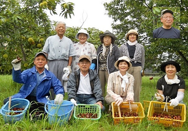 9月8日、雨、9名はメンバーの親戚の栗林へ「栗ひろい」に出かけました。