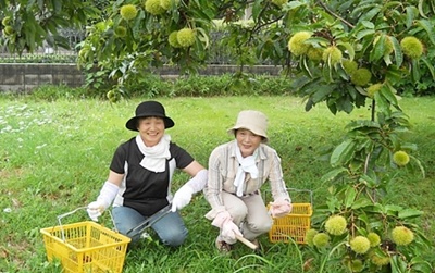 現地の東松山市に着いた時には雨もひと休み、おかげで栗をたくさん収穫することができました。