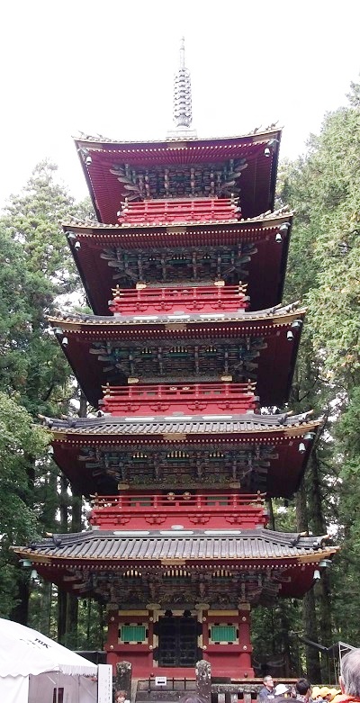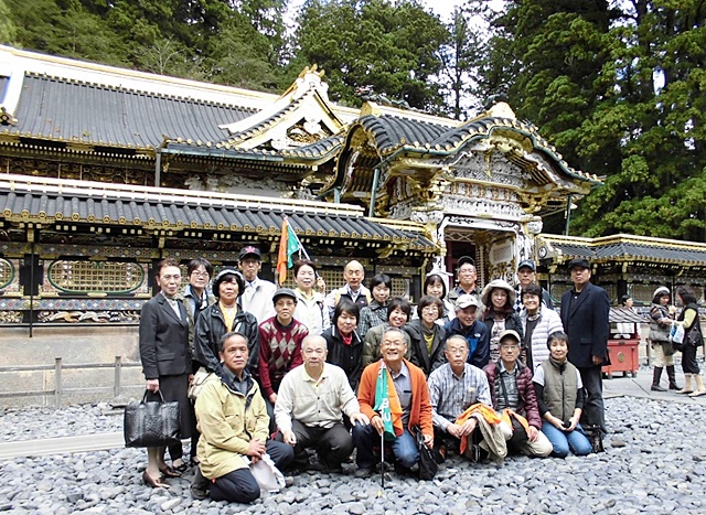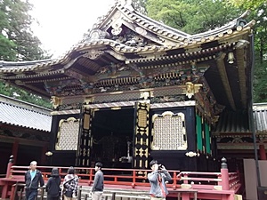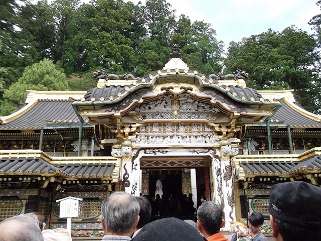 日光と言えば「陽明門」、あいにく工事中。しかし、真新しい漆塗りの部分も見られこの時だけの特典かも? 白色なので下地塗りかと思ったら、これが仕上げ、当時の白色は高貴の色だそうです、知りませんでした。門の左右にある外壁は、一枚の板を表からも裏からも彫ってある透かし彫りとのことで、これも国宝です。とにかく精緻で綺麗。中に入り「眠り猫」を観る、子どもの時に見たままで小さく薄眼を開けてすわっていました。裏側に回ると「雀」が遊ぶ彫刻、どちらも天下太平を表すとのこと・・ヘー。