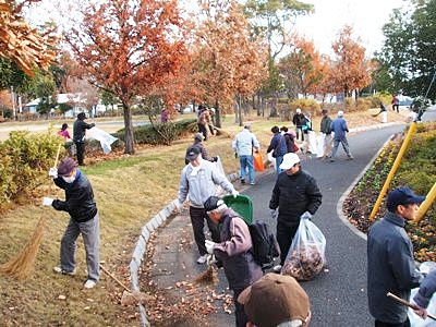 また、その後広範囲に広がった落ち葉も、我々ボランティア活動の手で瞬く間に無事終了する事が出来ました