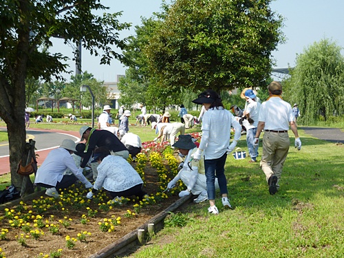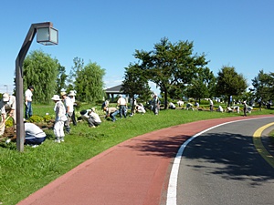 7月から夏時間(午前8時30分作業開始)で熊谷スポーツ文化公園のボランティアが始まりました。