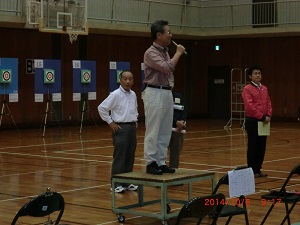 日本スポーツ吹矢協会 徳世理事の挨拶 西田審判長 競技説明