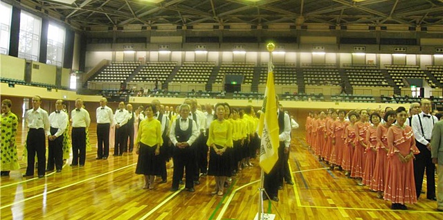 会場は色とりどりのコスチュームの花が開き、ダンスミュージックにのり、花が動き笑顔がはじけた。健康の有り難さをつくづく実感する。午後3時50分閉会式。参加者全員来年の再会を約して解散した。