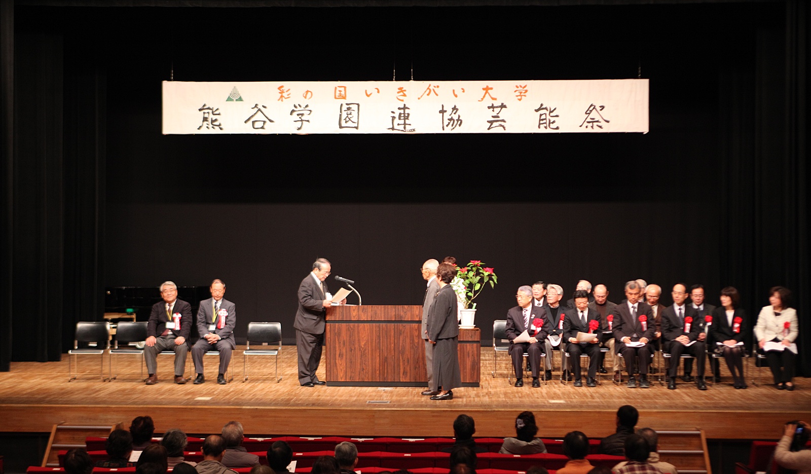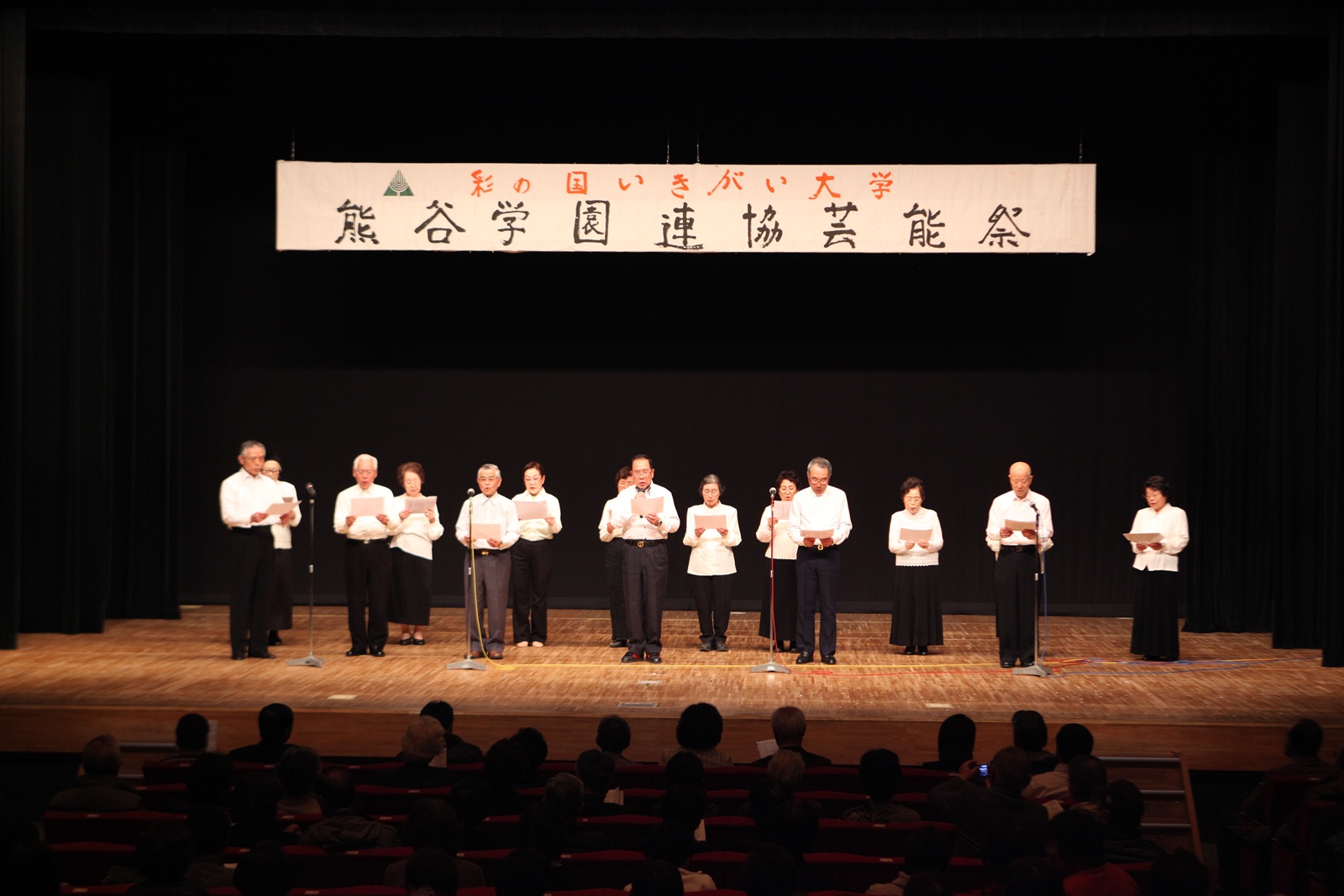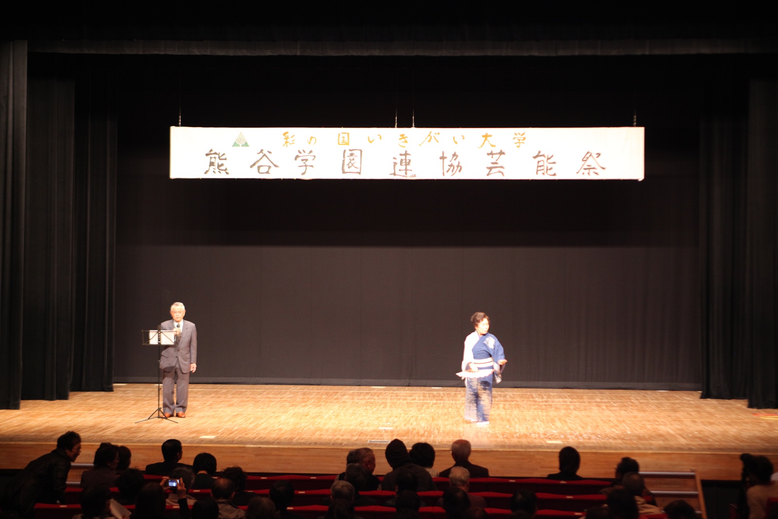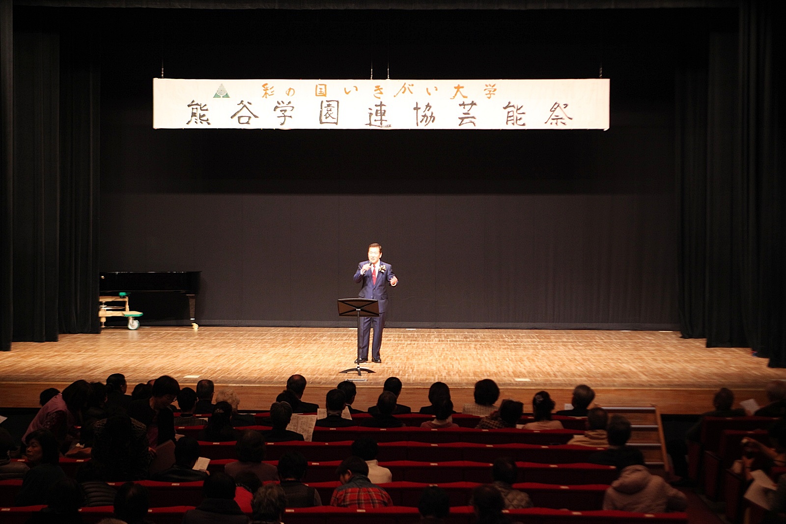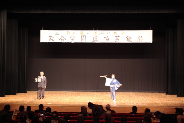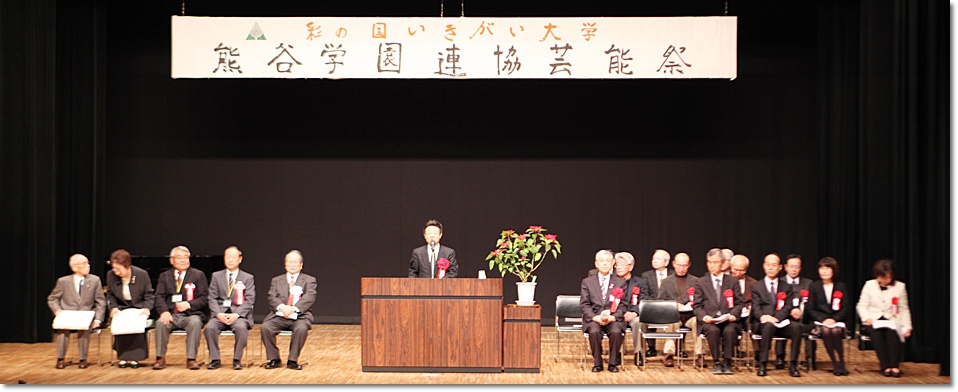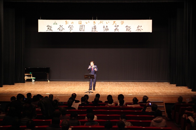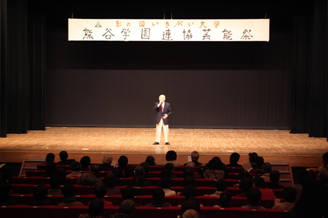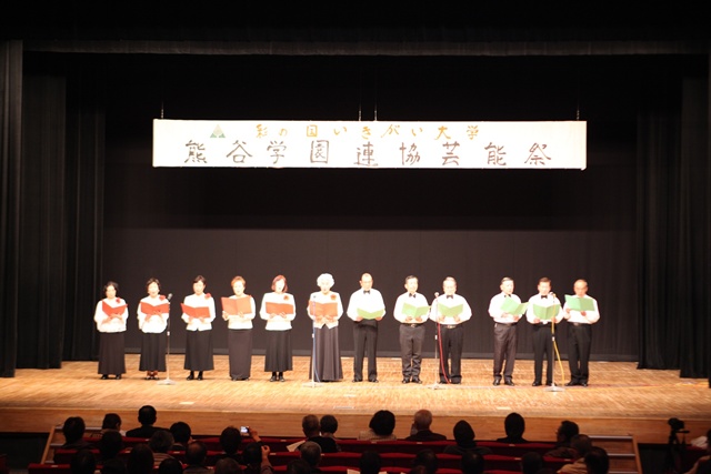 来賓挨拶では熊谷市長:富岡清様からお言葉をいただき、各学園連協会長のご紹介があり、無事開会式が終了、開演は定刻に始まりました。
