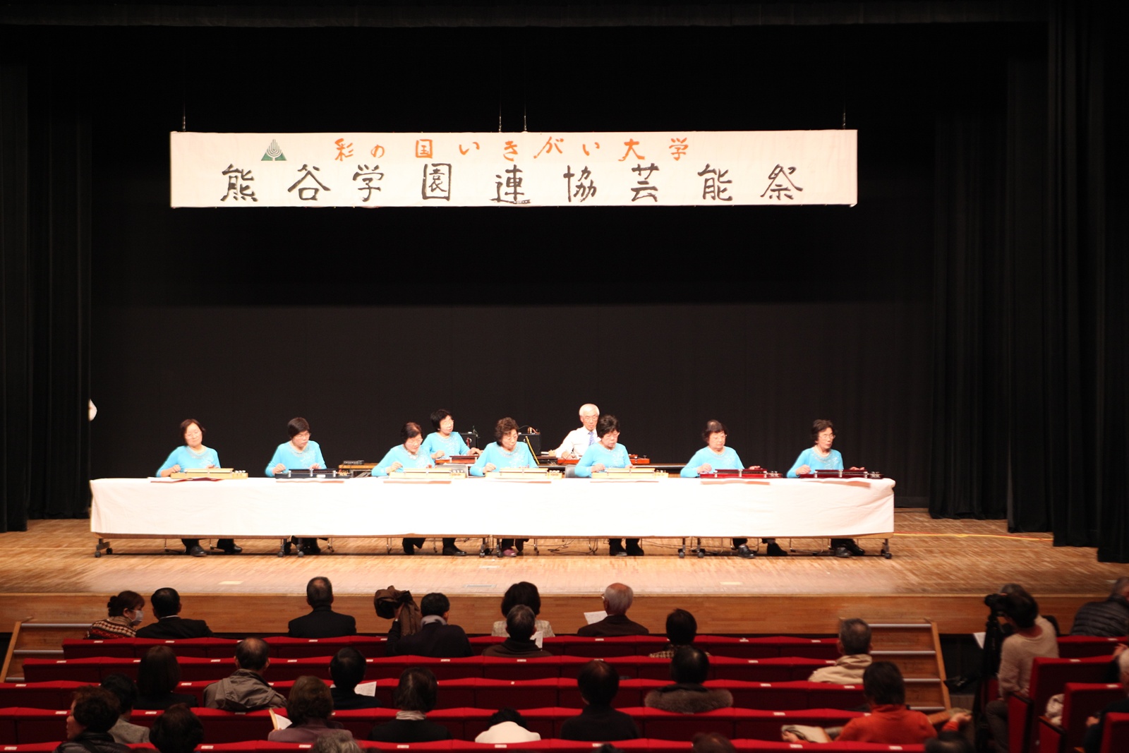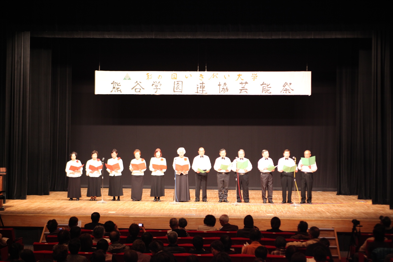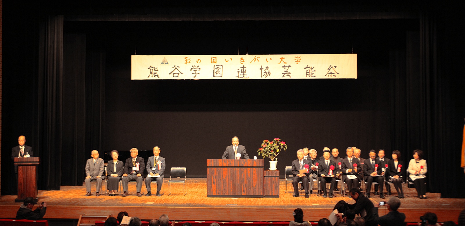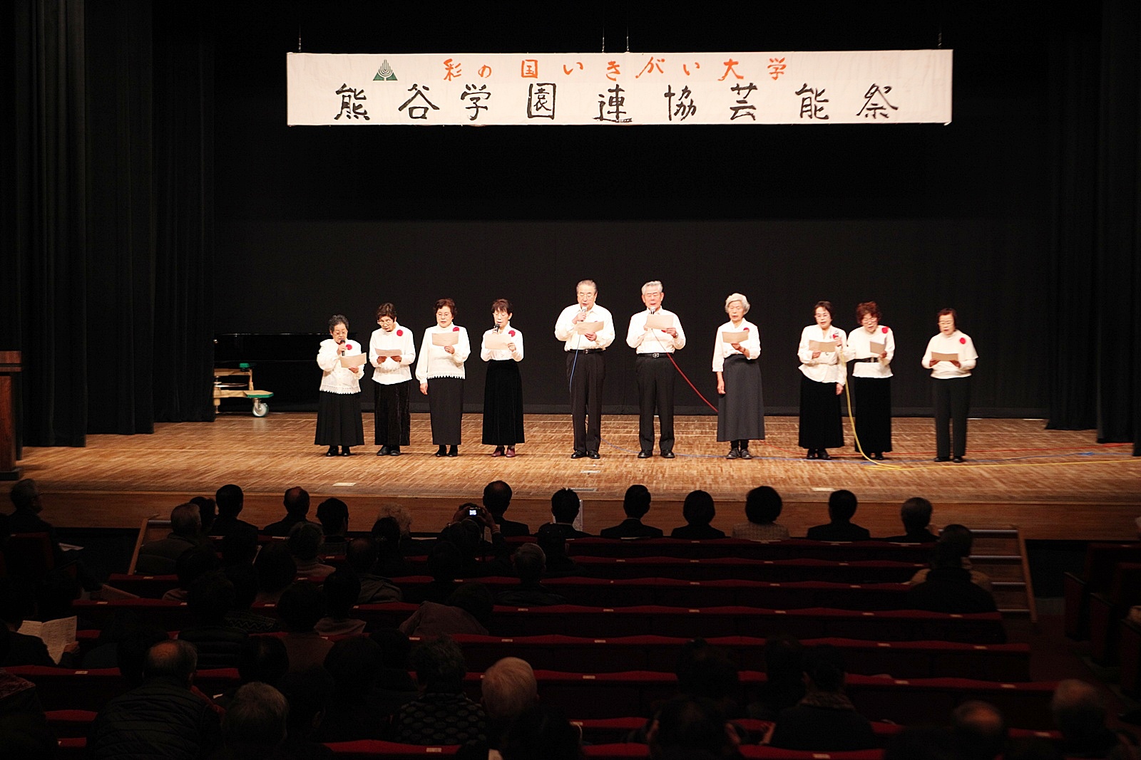 来賓挨拶では熊谷市長:富岡清様からお言葉をいただき、各学園連協会長のご紹介があり、無事開会式が終了、開演は定刻に始まりました。
