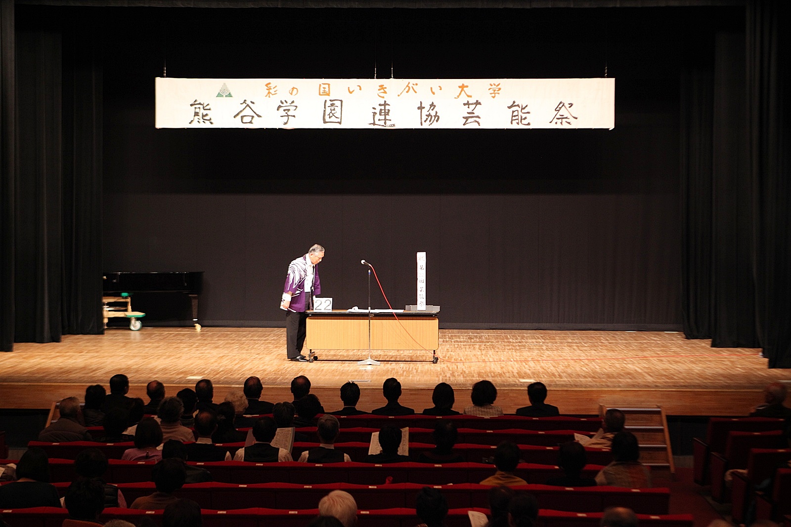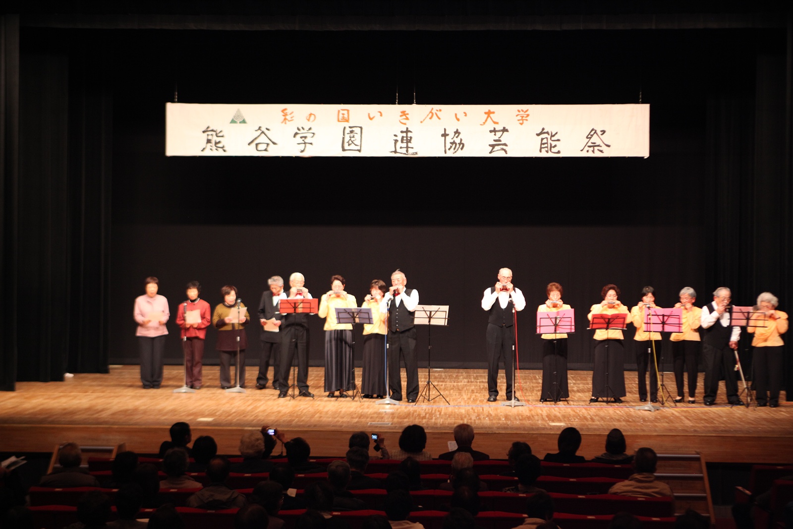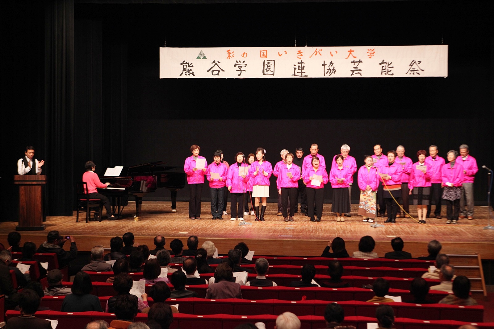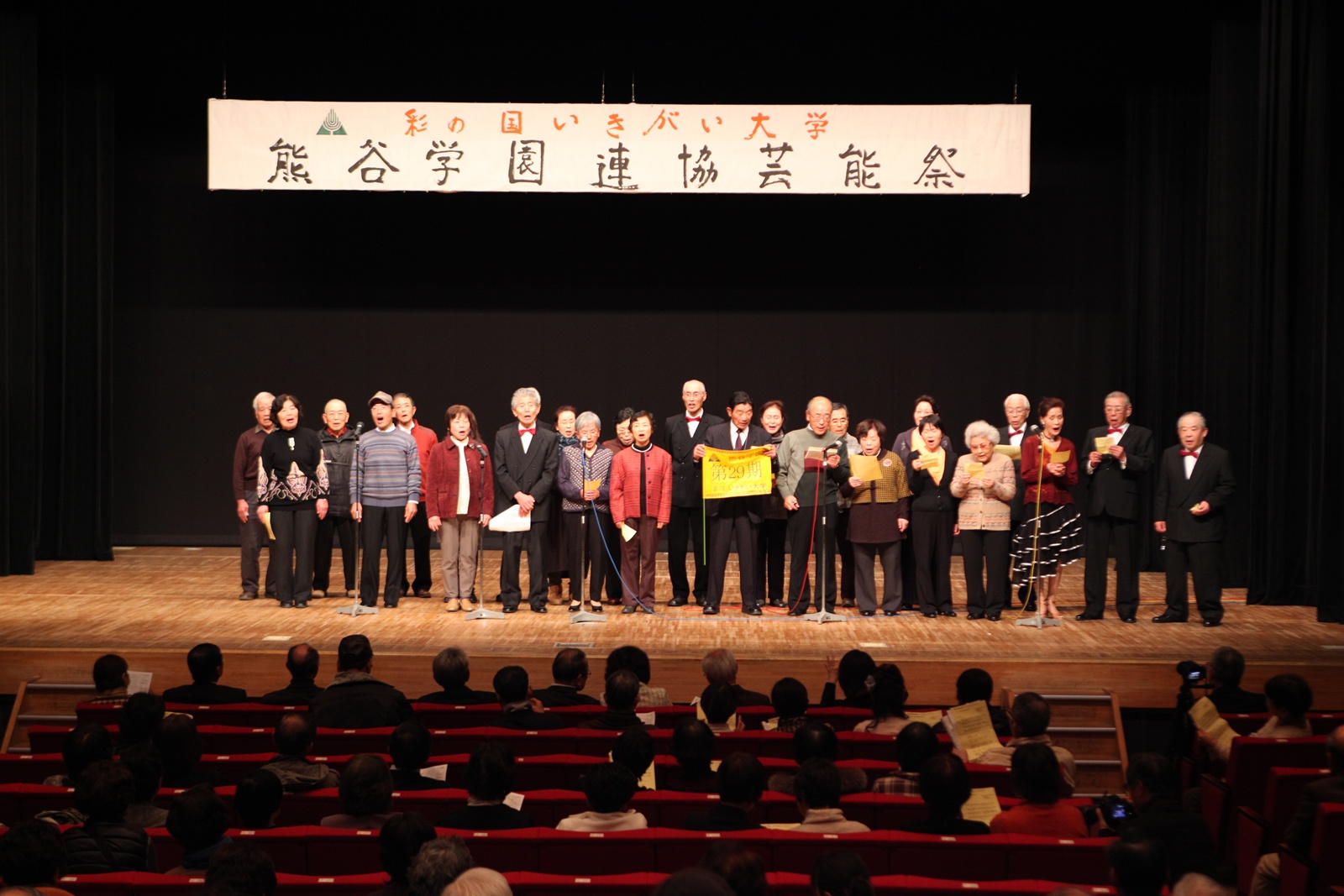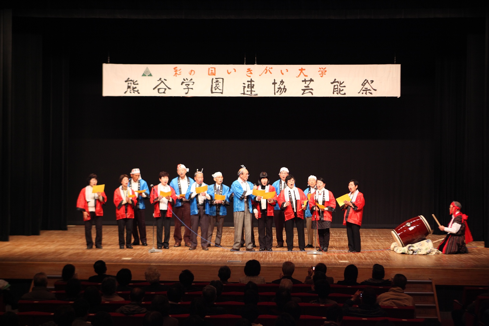 来賓挨拶では熊谷市長:富岡清様からお言葉をいただき、各学園連協会長のご紹介があり、無事開会式が終了、開演は定刻に始まりました。