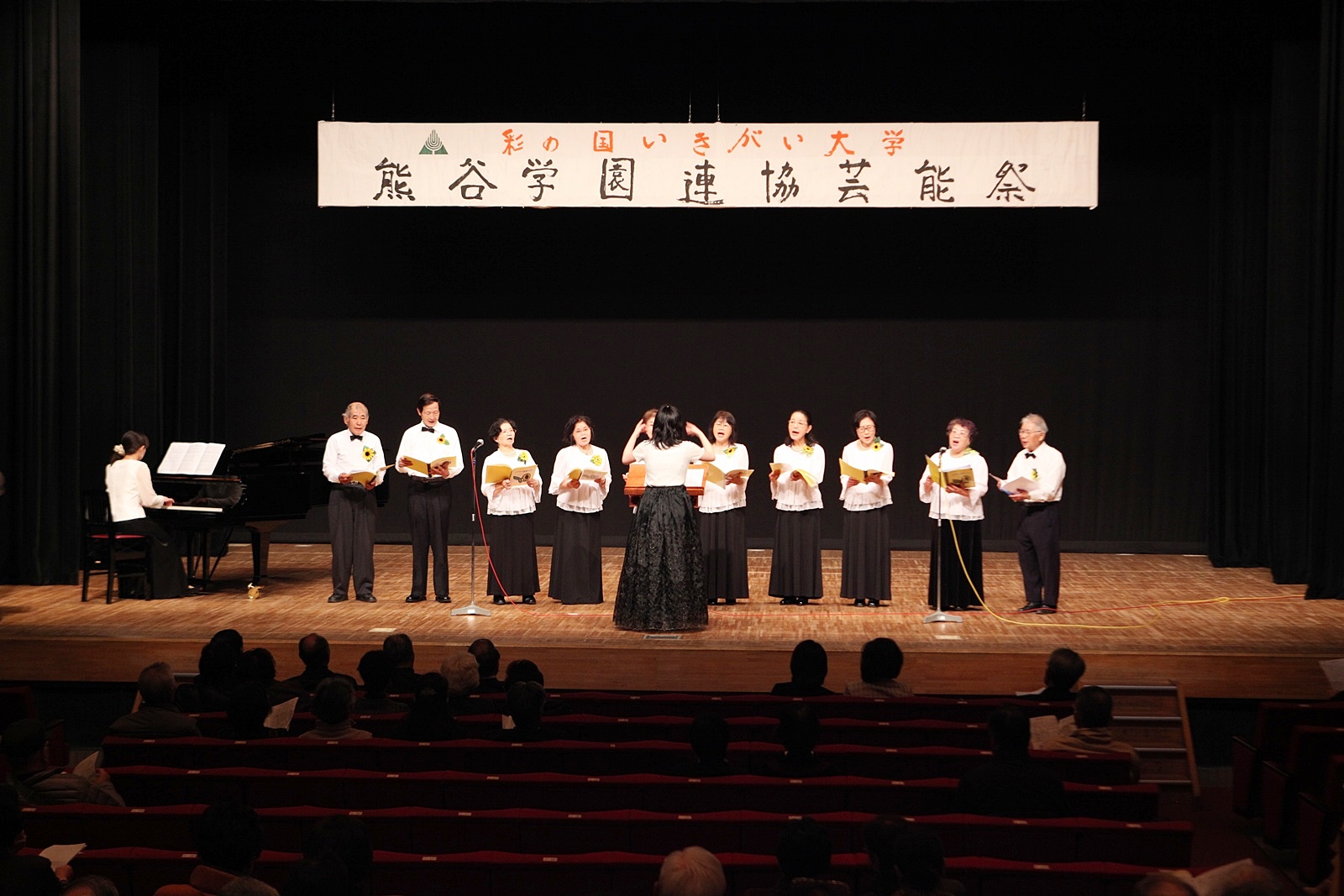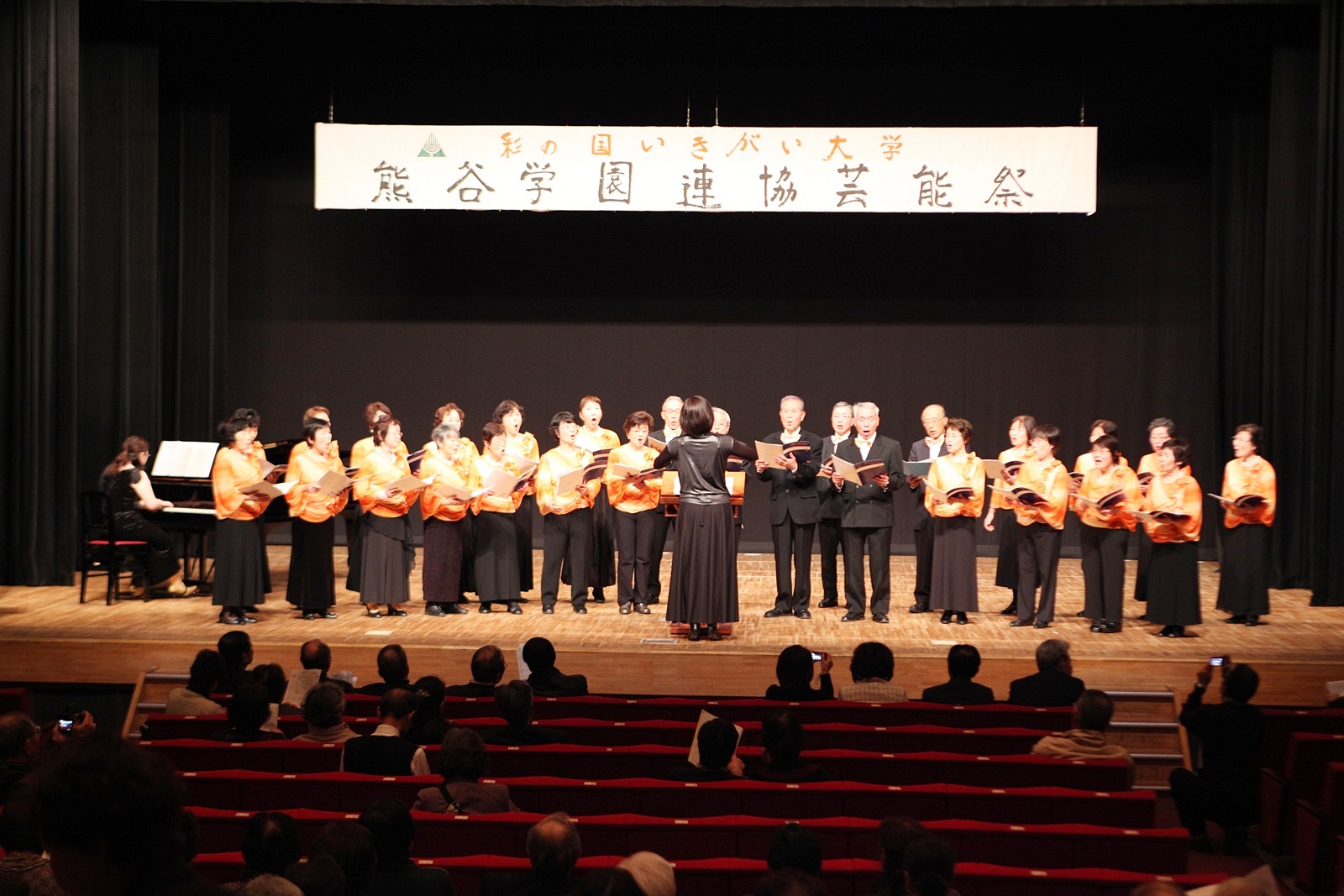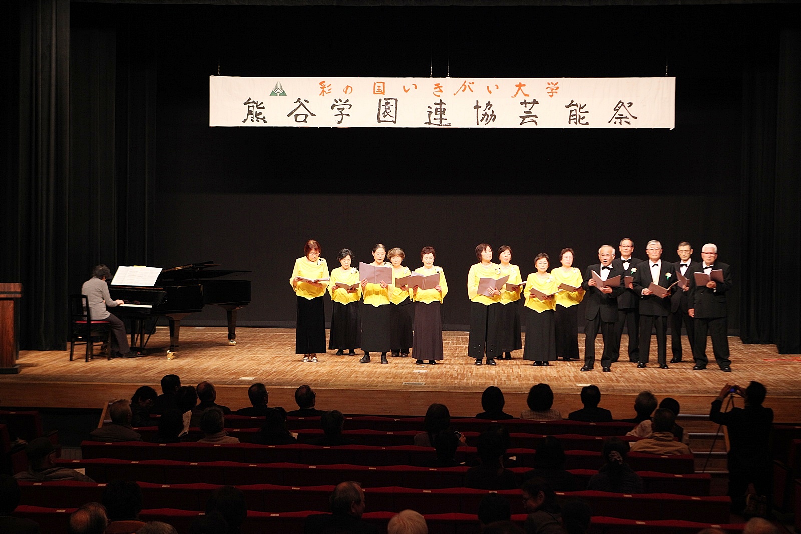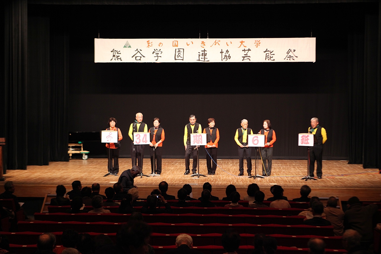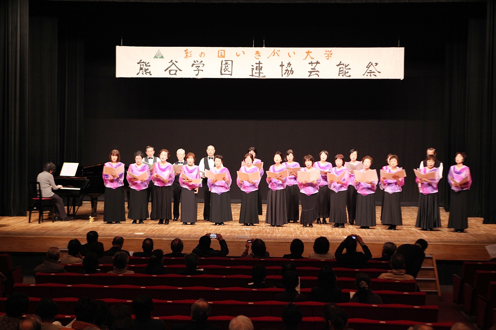 来賓挨拶では熊谷市長:富岡清様からお言葉をいただき、各学園連協会長のご紹介があり、無事開会式が終了、開演は定刻に始まりました。