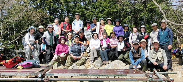 コースは登山口からトンビ岩・男坂女坂を抜け山頂へ、途中急な岩場の直登や少しガレ場の急斜面をクリアして山頂です。眼下に桐生市街と足利の山々を望み一同大満足、