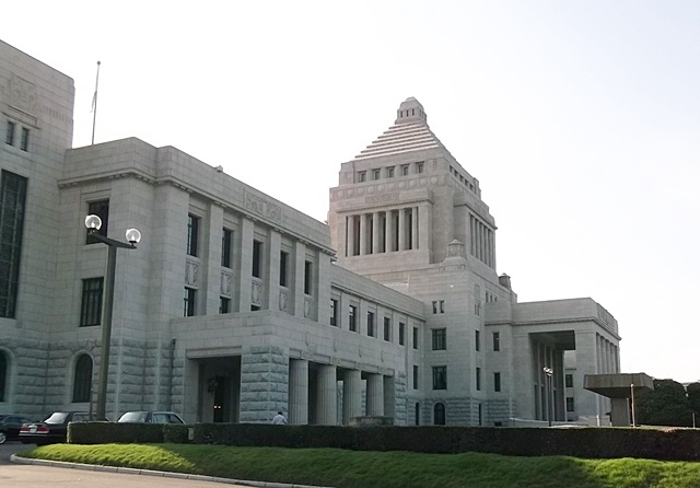 国会議事堂は、大正9年9月着工し、昭和11年11月に完成。17年の年月をかけて地上3階、中央部4階、地下1階、高さ65.45m。ステンドグラス・郵便ポスト・ドア鍵は外国製ですが、その他は全て日本の資材を使っています。