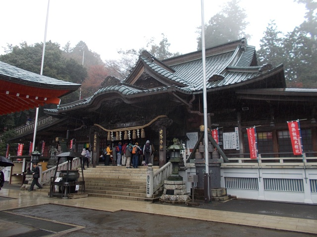 9時45分には、日本一急勾配(31度18分)のケーブルカーに乗り高尾山駅に、ここでポツリポツリと雨が 多少の雨も又楽し、洗い清められた参拝もまた良です。