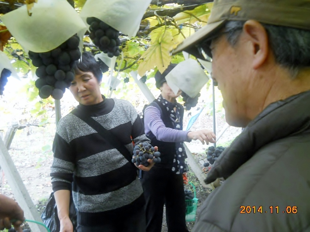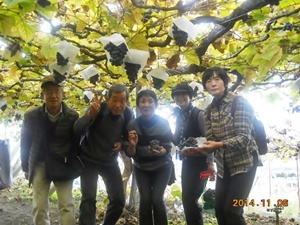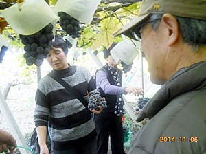 休む暇なく、隣のぶどう畑に移動、太陽が眩しいほどの晴れ間が見え、食べ放題となると別腹なんです。