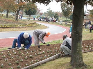 また、本日植えた花は冬に強い「ビオラ」とのことです。その数、2,600株、本日の花植えボランティア参加人数は171名と発表がありました。