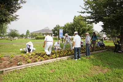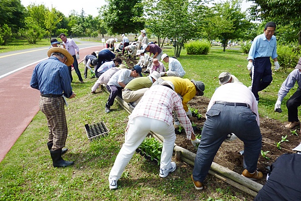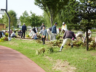 今年初めてのボランティアは今年初めての真夏日予報の中179名もの会員の皆様にご協力いただき、次回5月28日(水)の春花苗の植え付け準備をした。