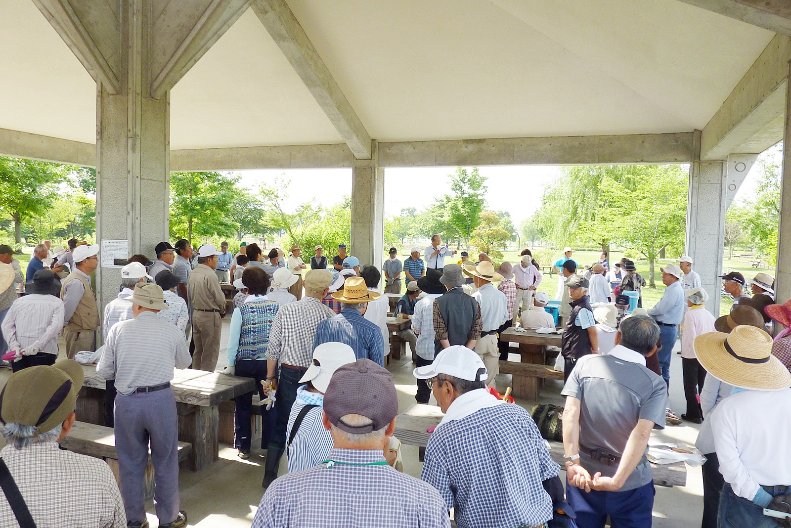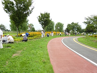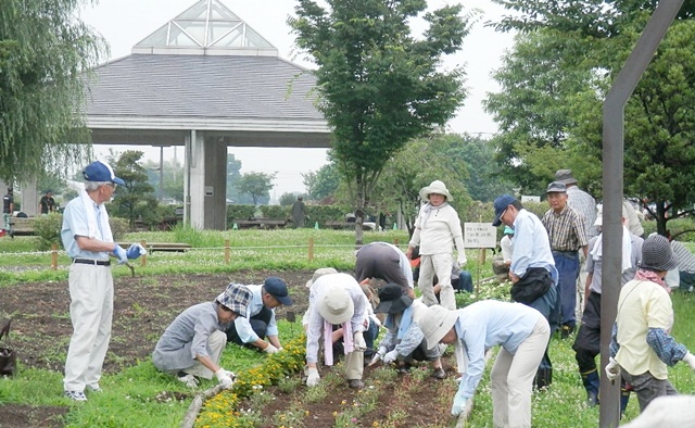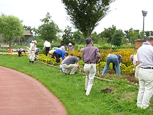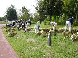 熊谷地方梅雨が明けました。朝からじりじりと30℃を超えた中、梅雨明け最初の熊谷スポーツ文化公園 のボランティア、会員151名のご協力をいただきました。