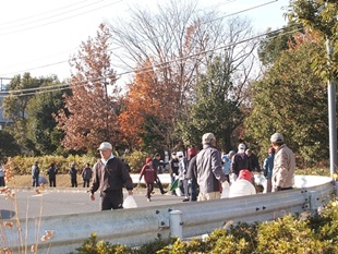また、第2回公開学習と重なりボランティアの参加人数が心配されましたが、114名の参加者があり、約45分程度で終了しました。広い「いきがい大学」受け持ち範囲も多勢でやればわけなく、和気あいあいのうちに終了しました