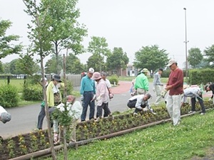 曇り空の鬱陶しい日でしたが、早朝より162名の方にご協力を頂きました。お陰さまで除草作業も30分で終了致しました。会員の皆様大変お疲れさまでした。