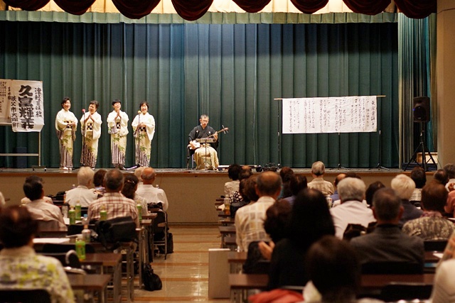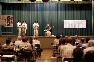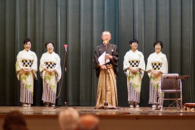 当日は、午前10時から富士三絃会(会主 久富輝義氏・秩父市)による「津軽三味線と民謡」と題し、「花笠音頭」「津軽じょんがら節」や「東京音頭」などが津軽三味線の勇壮で力強い、時には細かい音色の演奏と4人の女性の軽やかで弾むような声で津軽三味線の伴奏にのり民謡を唄い上げると会場は、大きな拍手がいつまでも続きました。
