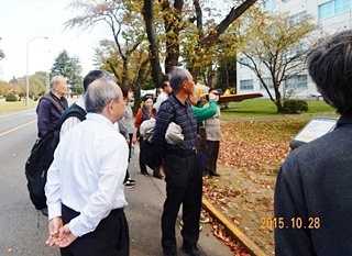 10月28日(水)第二班14名は同じく、ベルクの駐車場に13時30分に集合し、正門前で二列縦隊になり、入門の許可を得て入る事が出来ました。