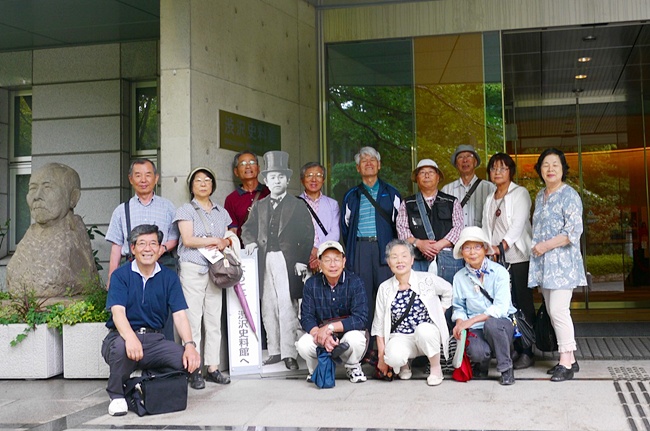 細部に渡り豊富な資料に驚かされました。又、熊谷学園で講義下さった館長さんのご挨拶を懐かしくお受けしました。拝観後に玄関で集合写真を撮りました。