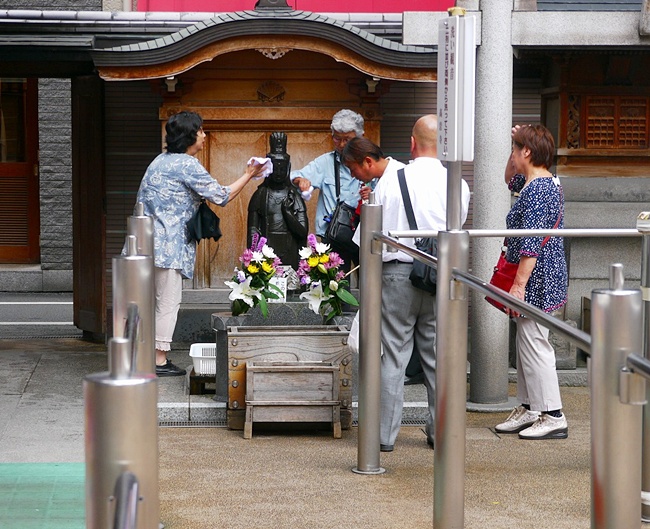 庚申塚の"とげぬき地蔵"へ向かいました。都電の車両の出発合図の"チンチン"の音色がそのまま使われていることに感激です。