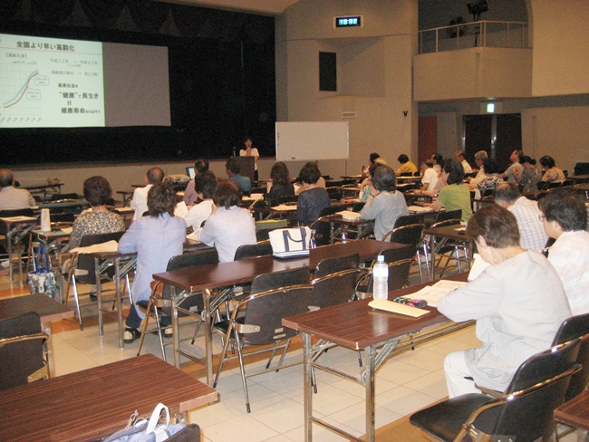 講義の主な内容は①健康長寿サポーターとは②健康づくりへのヒント―特定健診、食、からだを動かす、生活習慣、など。続いて10問の修了テストを受け、全員、無事に「健康長寿サポーター応援ブック」と県知事発行の「講習修了証」を戴きました。