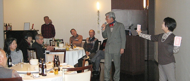 新年会は1月13日正午から熊谷「リガーレ」で43名が出席し開かれました。幸いに寒さ厳しいものの好天。座席は受付で抽選と言う方式で、いつもの班のメンバー以外との交流が図られました。