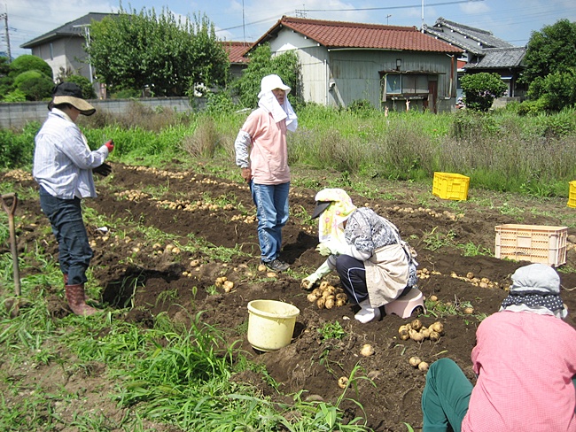 班員12名中、11名参加。3月の末に120個(10キロ)蒔いた種薯から約150キロの収穫がありました。