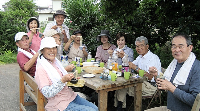 夏の草取りには悲鳴を上げながらも、秋の収穫祭を楽しみに汗を流しています。加えて収穫祭にはやはり同班の菊池さんの「手打ち蕎麦」が花を添え、収穫物とそれで大いに舌鼓を打ちました。