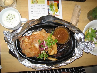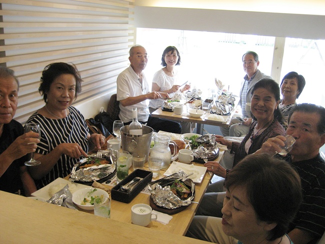 店は〈こじゃれた〉雰囲気で、肝心のメニューの価格も「リーズナブルな値段ね」との評判。ただ、男性陣もアルコール類はいつもの焼酎割りの定番と言う訳にも行かないのか、「ワインの白」と奮発? したようです。味も満足出来るもので、店内の混み具合からも「予約」が正解であったと話し合いました。