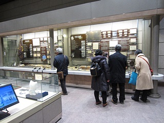 1階におり、証券資料ホールを見学します。渋沢栄一翁の資料もありました。