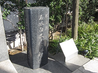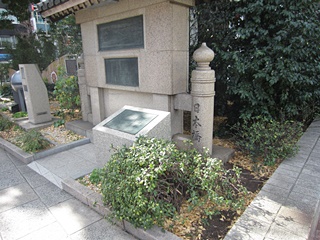 最後に"吉田松陰終焉の地"です。十思公園の片隅にあり、"留魂録"冒頭の歌「身はたとひ武さしの野辺に朽ちぬともとどめ置かまし大和魂」歌碑が建っています。
