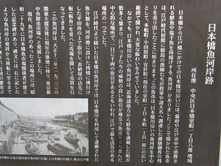 "日本橋魚河岸跡"魚河岸の銘板では大名家に売った残りを庶民に売り出したのが始まりだったそうです(*_*;)