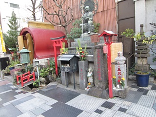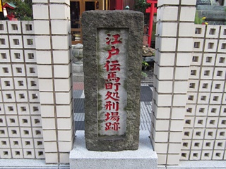 この近辺は"伝馬町牢屋敷跡"です。赤字で書かれた碑「江戸伝馬町処刑場跡」は気持ちが悪い程です。