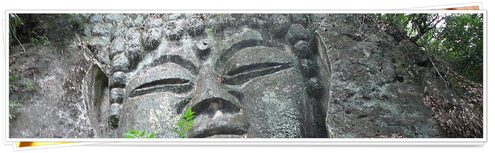 長厳寺の巨大磨崖仏(岩壁に彫られた仏像)です。顔だけなら日本一の大きさだそうです。ネツトで見たところ制作は意外に新しく昭和60年で、一般の人が彫ったようです。 手を合わせてしっかり願かけてもご利益はなさそうです。