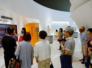 ホールでは創業者の江崎利一氏の人生物語・グリコ誕生の元になった牡蠣(カキ)のエキスに多量のグリコーゲンが含まれていることからグリコと会社名にしたそうな。ポッキーとブリッツの製造工程を見学し、お土産にポッキーを頂きあっという間の90分間でした。