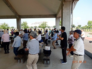 先ずは田島総務部長へ受付を済ませ中島熊連協会長からのご挨拶に続きラジオ体操が行われ(初めての取りいれ)ました。