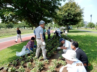 平成27年6月24日(水)晴れ 今日は平成27年度の7班・8班は初めての花ボラ活動の日です。