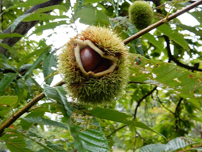 今年は暑かったせいか成長が早いとの事、もう半分以上は落ちてしまったようです。カゴに一杯の大きな栗だけ拾いカゴが抜けてしまう程でした。