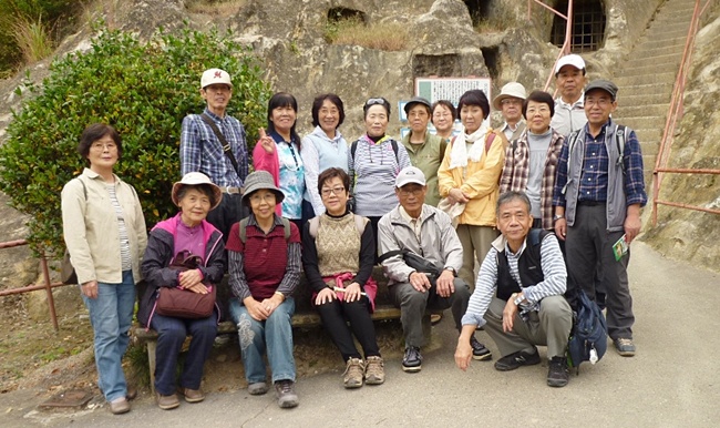 10月21日(水)良い天気に恵まれ、17名の多数参加で鴻巣駅からバスに乗り、百穴で降りて、歩きをスタートしました。小学生の遠足で来たことがある思い出の百穴を久しぶりに訪れました。