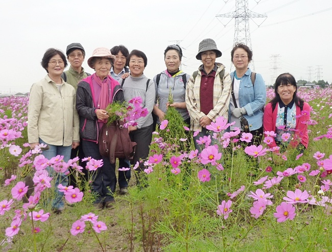 その後、ハ丁湖の周辺をのんびり歩き森林浴をして、町内バスで「道の駅いちごの里よしみ」に向かい、近くのコスモス畑で綺麗に咲いたコスモスを観賞し、心が和みました。