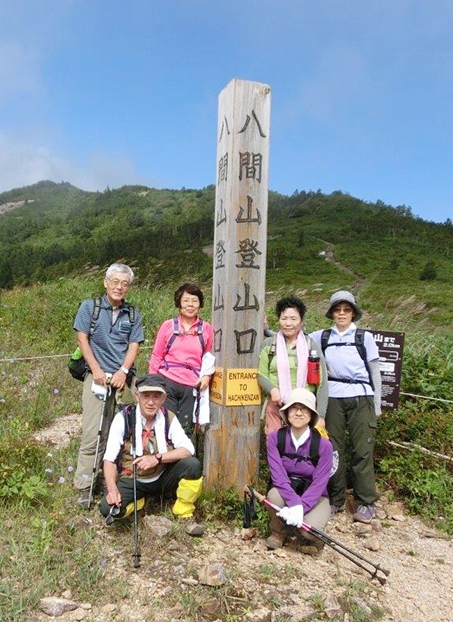 8月下旬から続く不安定な天候の中、雨空を予想しての出発でしたが、現地到着時では晴れ間ののぞく絶好の日和でした。いつもの準備体操をして八間山(1934m)へ登山開始です。