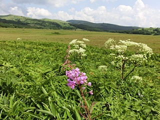 車山からの展望は360°の大パノラマに満足。コースには終わりを迎えるニッコウキスゲやノアザミ・トラノオ等多くの高山植物も楽しみました。又、八島湿原では遊歩道の両側に高山植物の花々が咲き競っていました。
