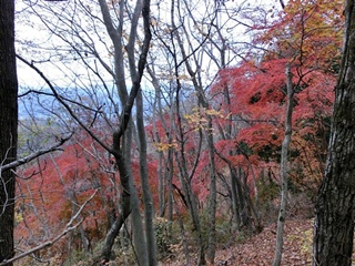紅葉も始まりかけた感じの中、2時間10分で山頂到着。山頂には多くの人が食事休憩で混雑しておりました。山頂からは新宿・横浜方面も見渡せる絶好の天気でした。