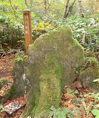 草紅葉のきれいな玉原湿原を抜け玉原越えからブナ地蔵へ、ブナの根が苔むしてお地蔵さんのようにみえました。ブナの森ブナ平を過ぎ谷川連峰が望めるスキー場ゲレンデを抜けると鹿俣山山頂へ3時間で到着です。