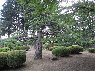 この四脚門で最初の説明を受けます。境内に入り、松の枝ぶりの良さに、ついシャッターを切りました。