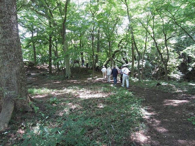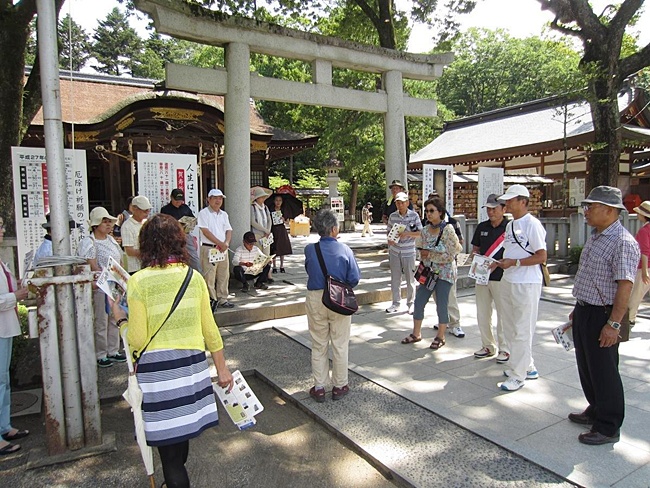 甲府の名前は"甲斐の府中"と云う意味等、日陰でガイドの大西さんの説明に聞き入ります。